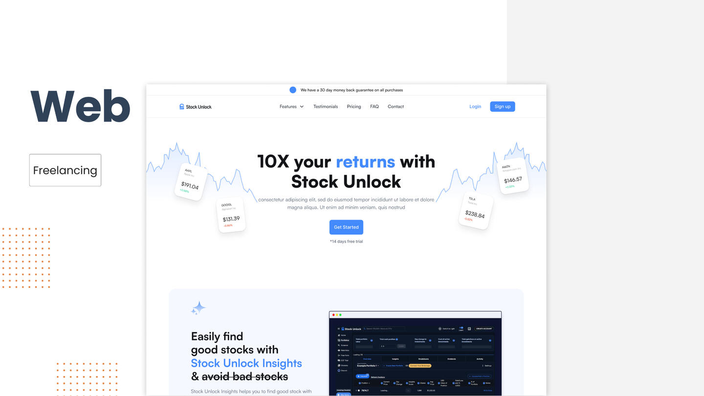 Landing Marketing Page which communicates Stock Unlock's features to users.